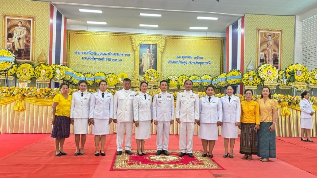 บุคลากร สกร.ระดับอำเภอบ้านดุง เข้าร่วมกิจกรรมเนื่องในวันนวมินทรมหาราช โดยมีพีธีทำบุญตักบาตร