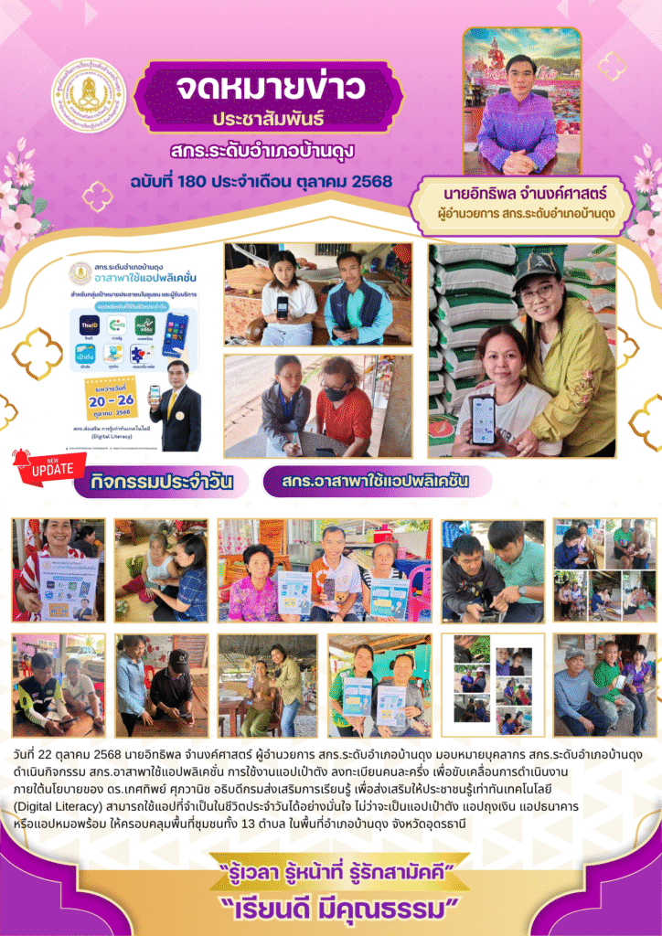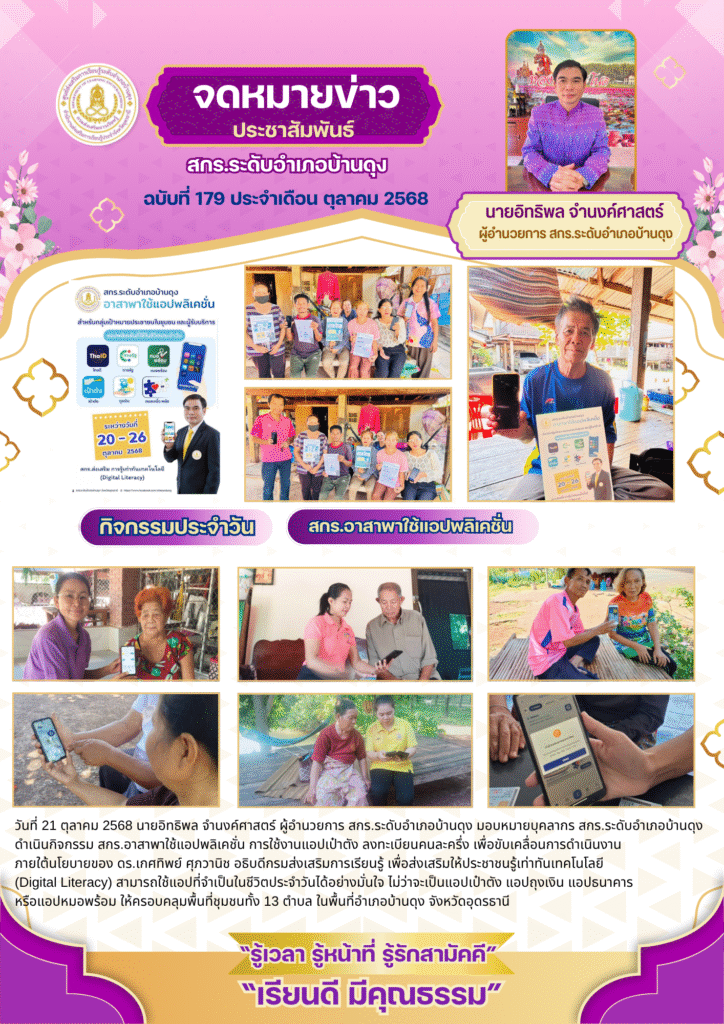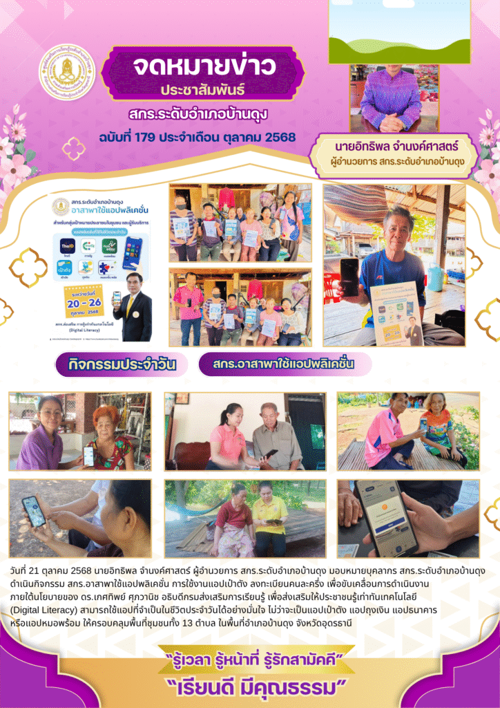 (Digital Literacy) สามารถใช้แอปที่จำเป็นในชีวิตประจำวันได้อย่างมั่นใจ ไม่ว่าจะเป็นแอปเป๋าตัง แอปถุงเงิน แอปธนาคาร